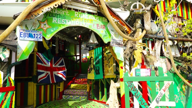 Dans l'après-midi, nous montons au village, insolite, dans son jus, où de nombreux "bouis-bouis" sont à l'effigie de Bob Marley.