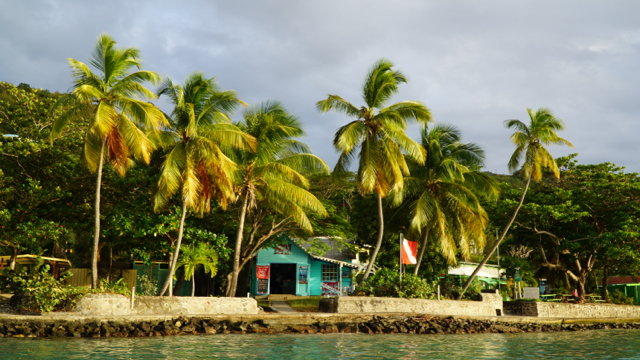 Alors que nous mouillons à Palm Island - autre île privée investie en partie par un groupe hôtelier haut de gamme - un avitaillement en fruits et légumes s'avère nécessaire. Palm Island étant dénuée de toute épicerie, nous nous dirigeons d'un saut d'annexe vers Union à 1 mille de là. Au retour, notre curiosité nous pousse à faire escale sur cet îlot, situé entre les deux îles.