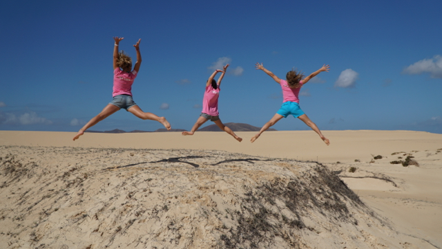 La plage de Sotavento se trouve à l'extrémité Sud de l'île et le vent bénéficie de 2 effets accélérateurs: l'effet "venturi" (le vent est accéléré entre 2 montagnes), et l'effet thermique (le vent passe au-dessus d'une dune de sable immense). Résultat: au moindre rayon de soleil, le vent se lève et peut rapidement atteindre 35nds l'été. Lors de notre passage, 25nds m'ont permis de faire une super session de kite dans un cadre magnifique, le tout au ras de la plage dans 30cm d'eau. Attention tout de même: ici le vent souffle depuis la terre et envoie tous les imprudents très rapidement au large. L'énorme école de kite installée sur la plage est d'ailleurs équipée de plusieurs jet-skis qui vont récupérer sans arrêt les stagiaires débutants.