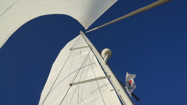 Jour 2 : on retrouve notre organisation de nav. Le vent s'est quelque peu levé mais nous permet de barrer sous pilote en s'enfilant 2 à 3 films pendant notre quart - une telle boulimie de films, du jamais vu pour ma part. Le lendemain, nous profitons du temps calme pour assurer une séance de Cned musclée.