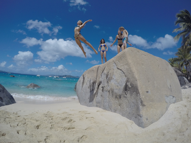 Le ciel - très couvert depuis quelques jours, semble se dégager. Ca tombe bien car aujourd'hui nous mettons le cap avec Mimosa et Siminoe sur les Baths, lieu mythique des BVI. On lève l'ancre tôt pour être sur site à 7h30, avant l'arrivée des visites organisées. Bien vu ! Avant 9h, nous ne serons, avec Siminoe et Mimosa, que trois bateaux au mouillage.
